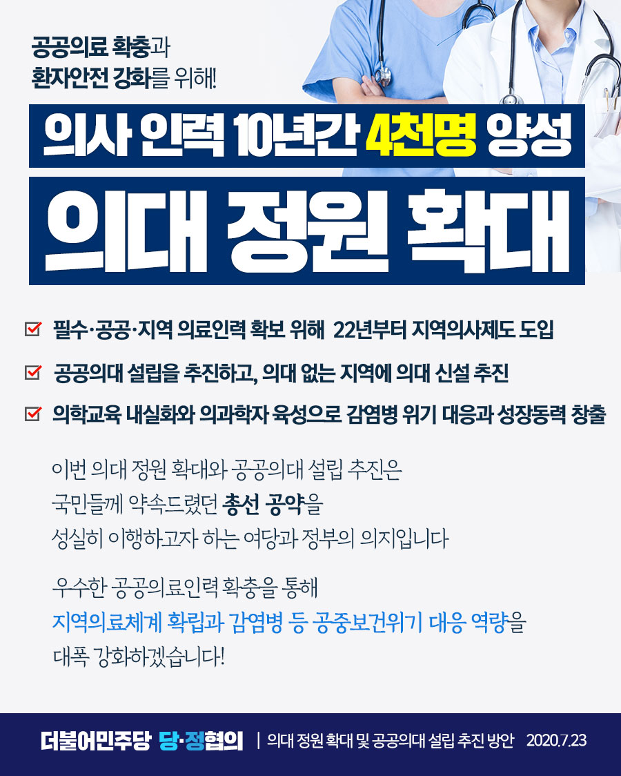 공공의료 확충과 환자안전 강화를 위해, 의대 정원 확대!