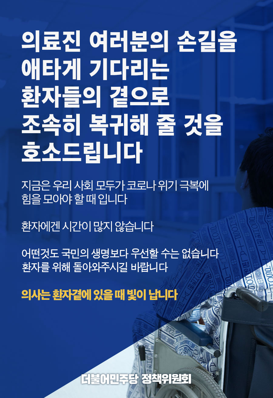 의료진 여러분, 환자들의 곁으로 조속히 복귀해 줄 것을 호소드립니다