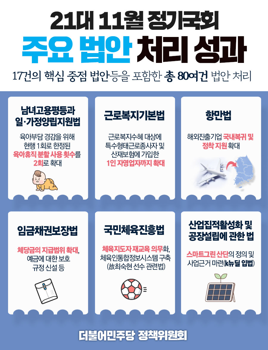 21대 11월 정기국회 주요 법안 처리 성과