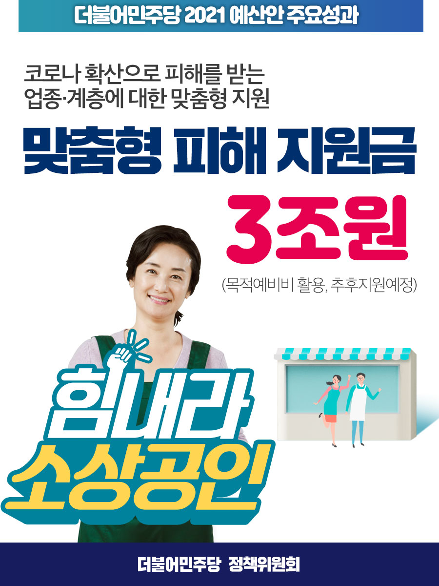 [2021예산성과] 코로나 확산 피해 업종,계층 맞춤형 피해 지원금 3조원