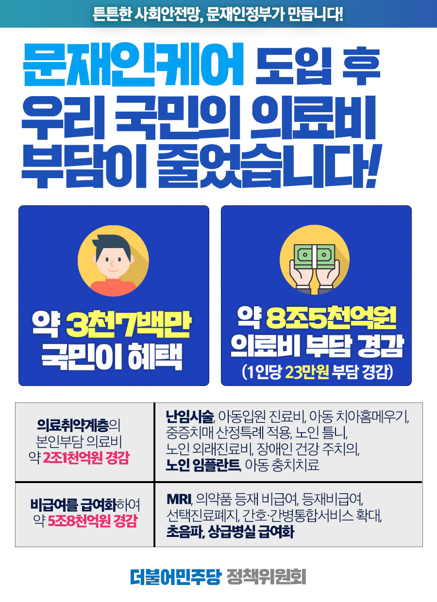 문재인케어 도입 후 우리 국민의 의료비 부담이 줄었습니다!