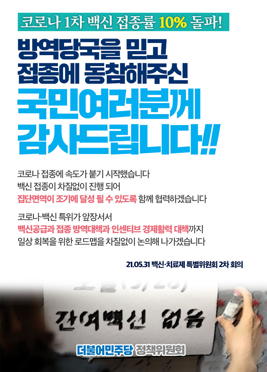 방역당국을 믿고 접종에 동참해주신 국민 여러분께 감사드립니다!