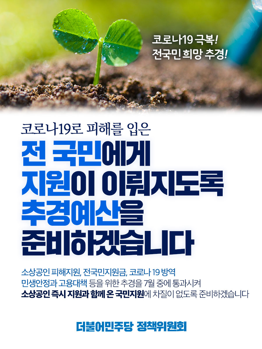 전 국민에게 지원이 이루어지도록 추경 예산을 준비하겠습니다!