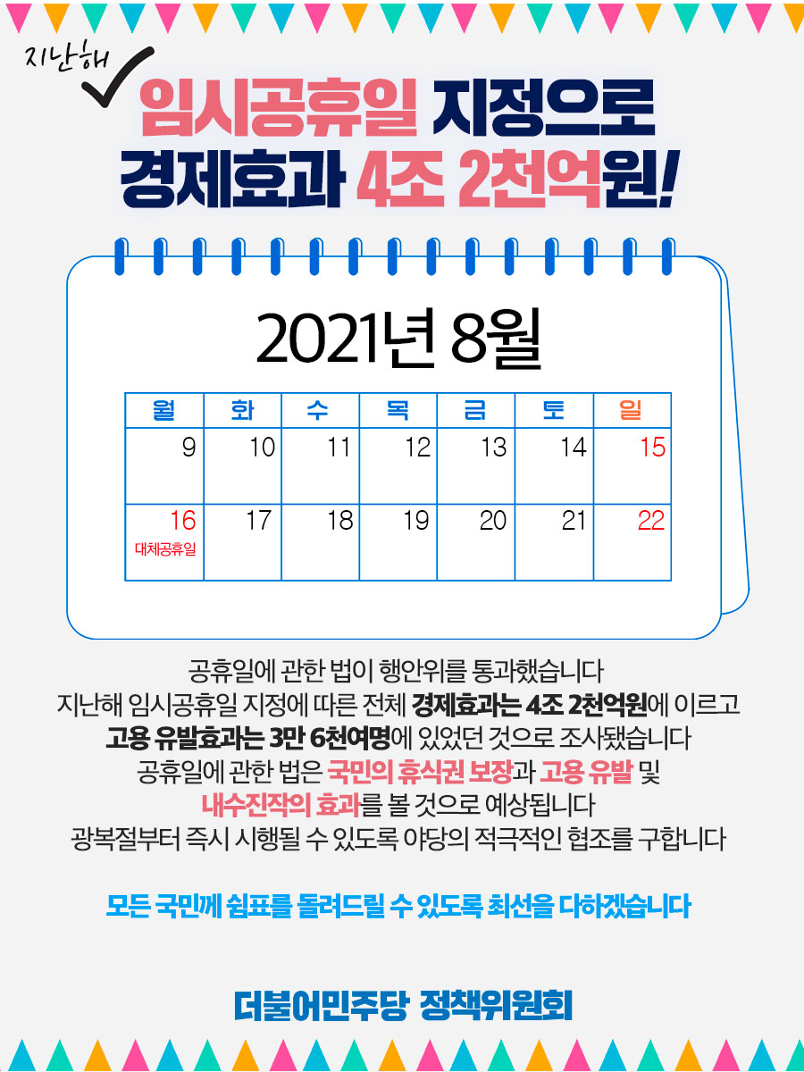 지난 해, 임시공휴일 지정으로 경제효과 4조 2천억원!