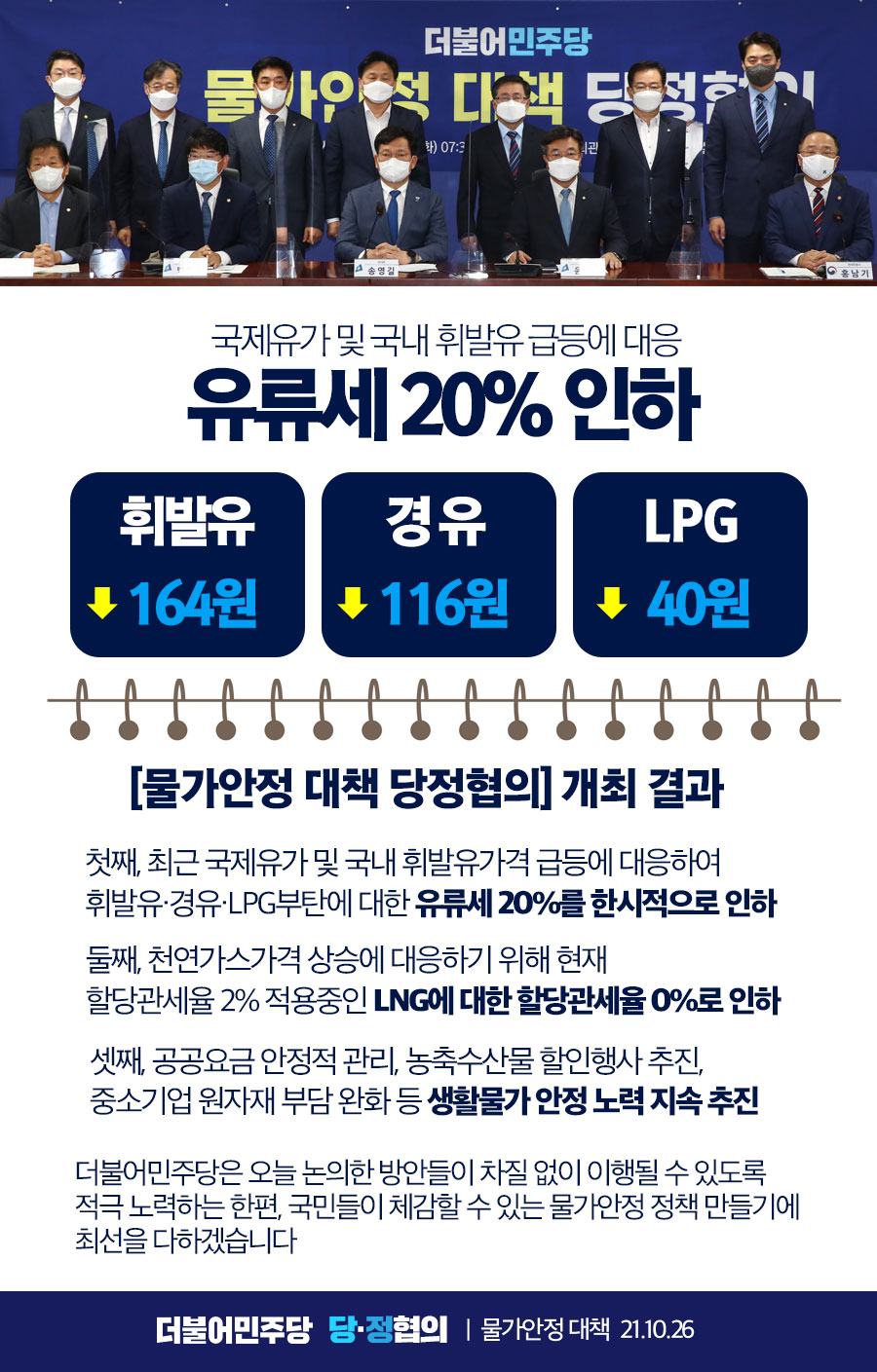 [물가안정 대책 당정협의 결과] 유류세 20%를 한시적으로 인하!