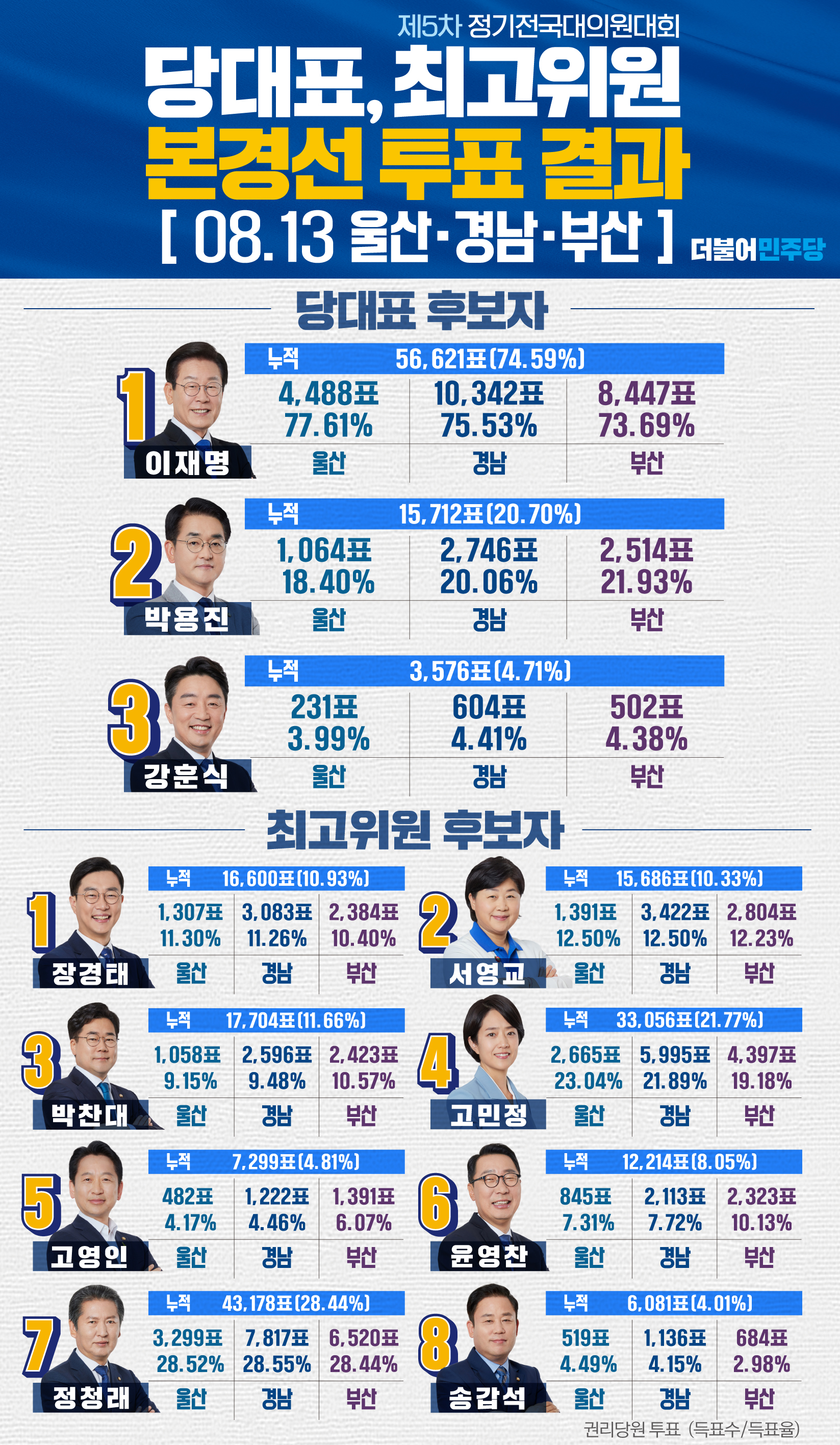 당대표, 최고위원 본경선 투표 결과 [울산, 경남, 부산]