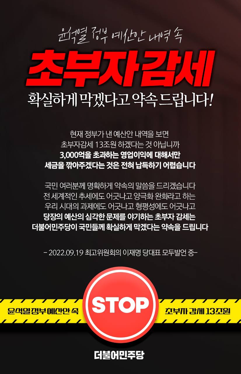 윤석열정부의 '초부자감세'는 더불어민주당이 확실하게 막겠다는 약속을 드립니다