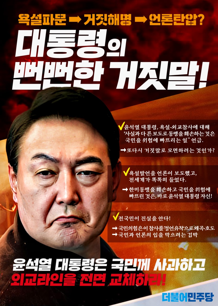 대통령의 뻔뻔한 거짓말! 윤석열 대통령은 국민께 사과하고 외교라인을 전면 교체하라!