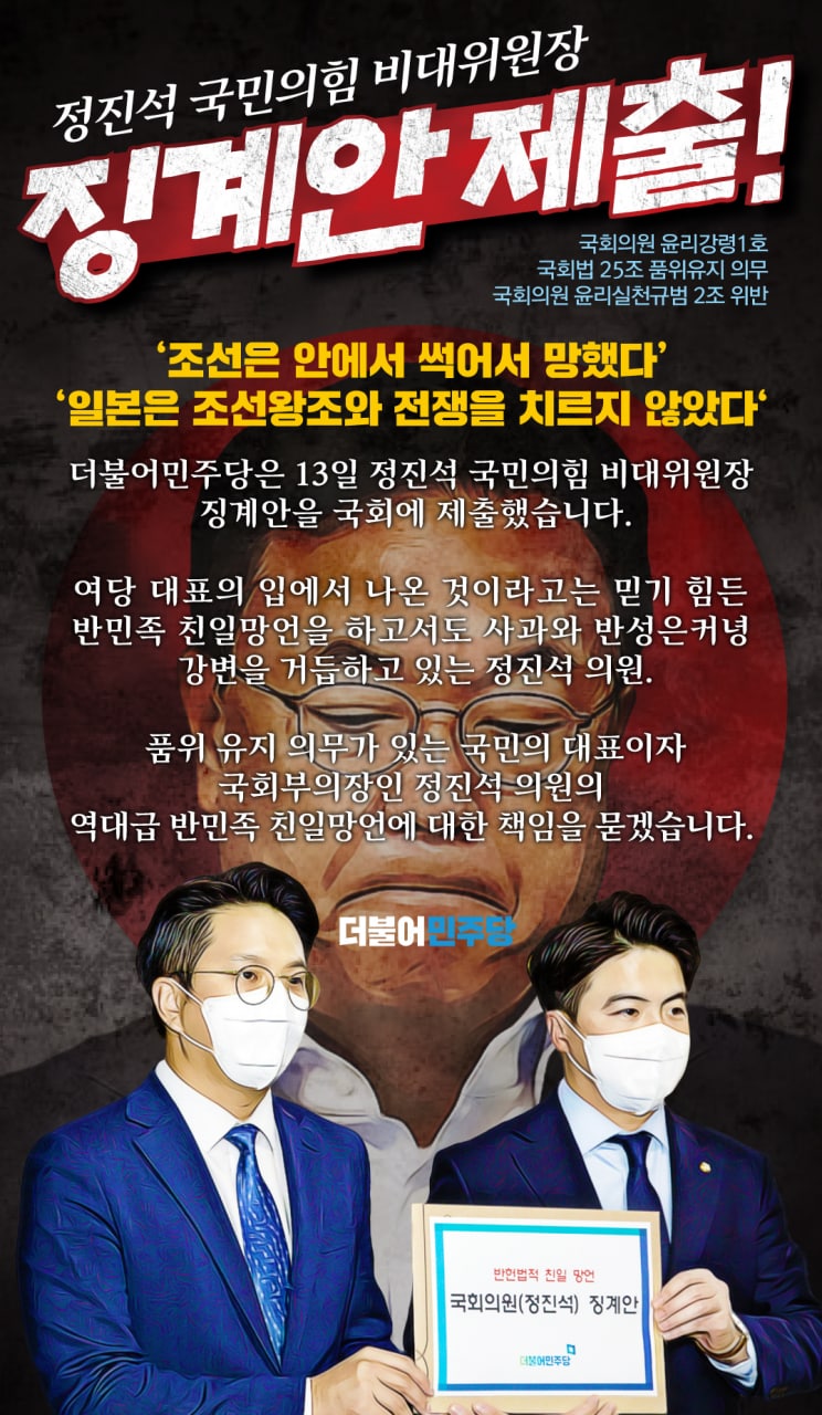 정진석 국민의힘 비대위원장 징계안 제출!