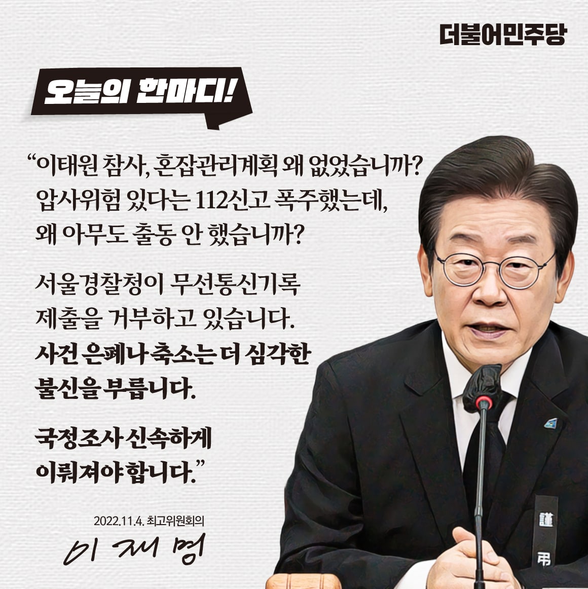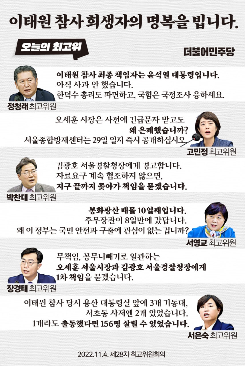 윤석열 대통령은 책임자를 파면하고 국정조사를 수용하십시오!