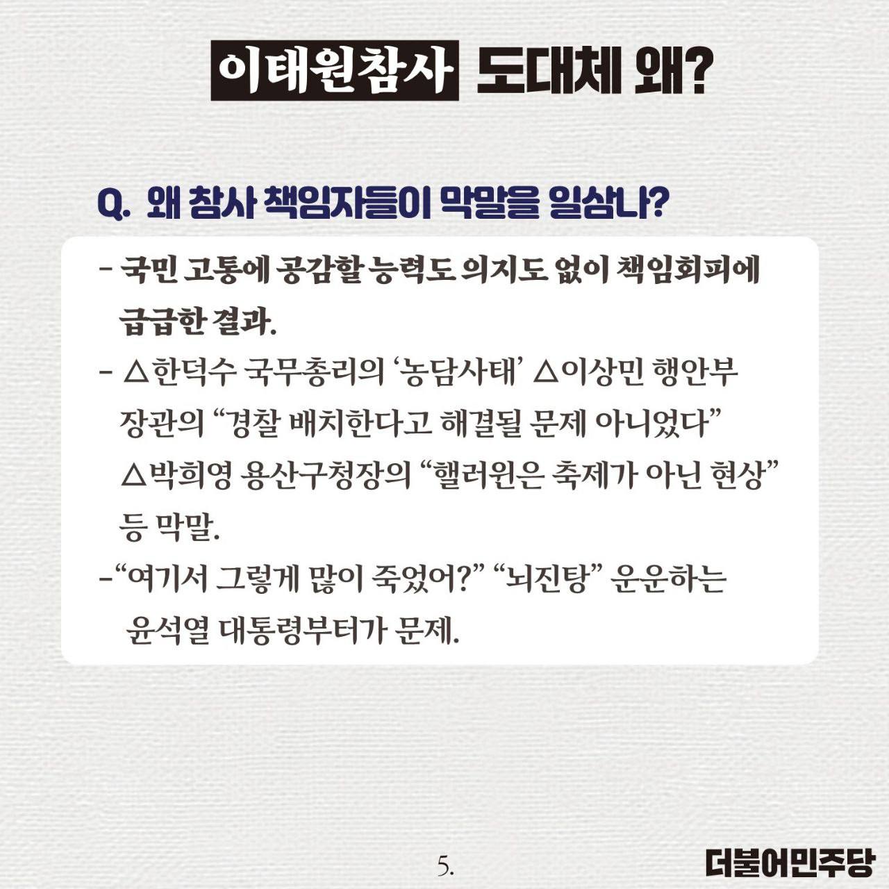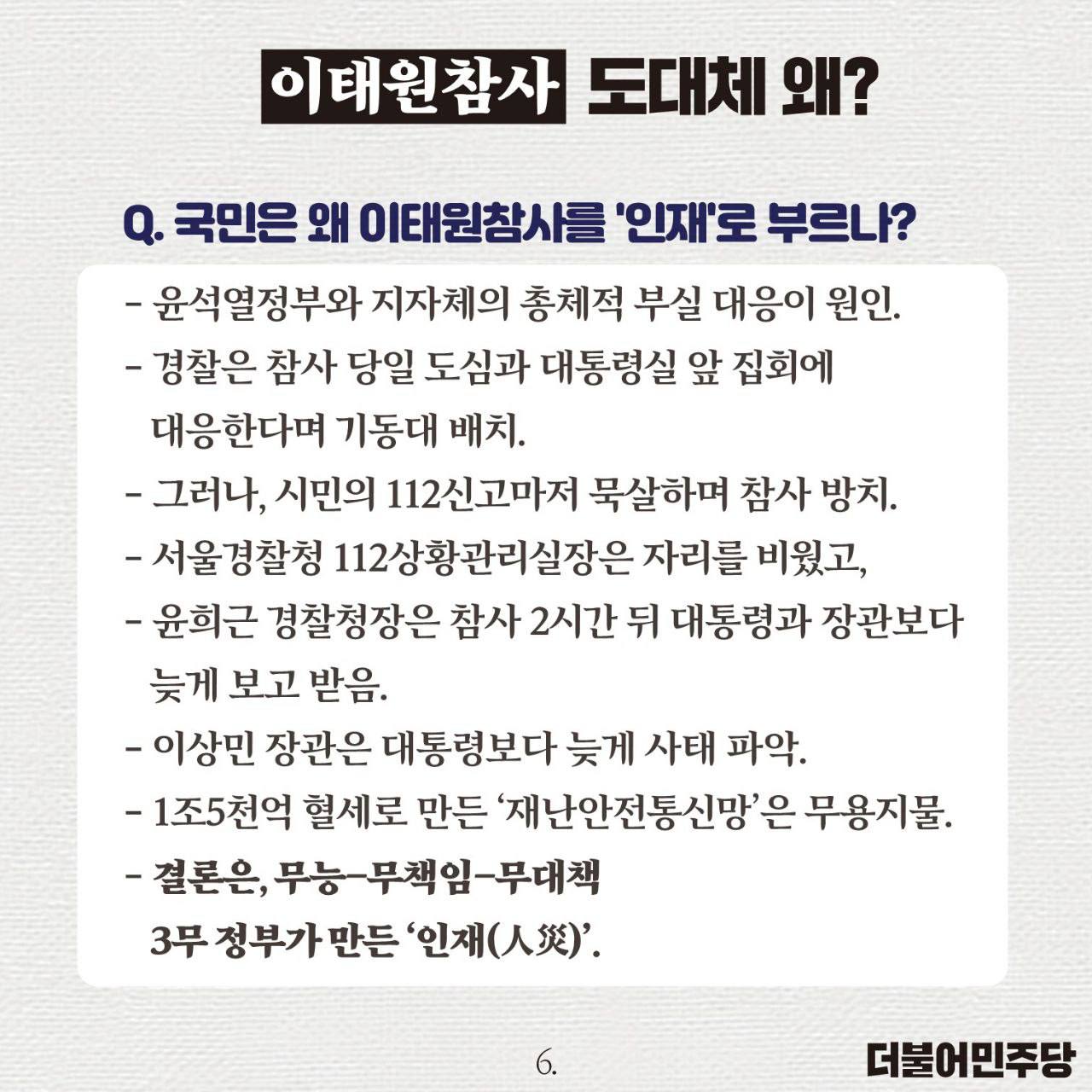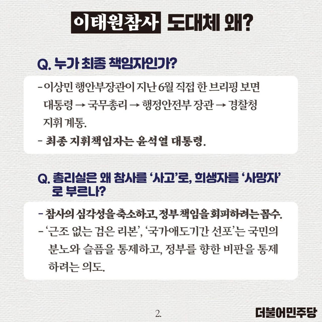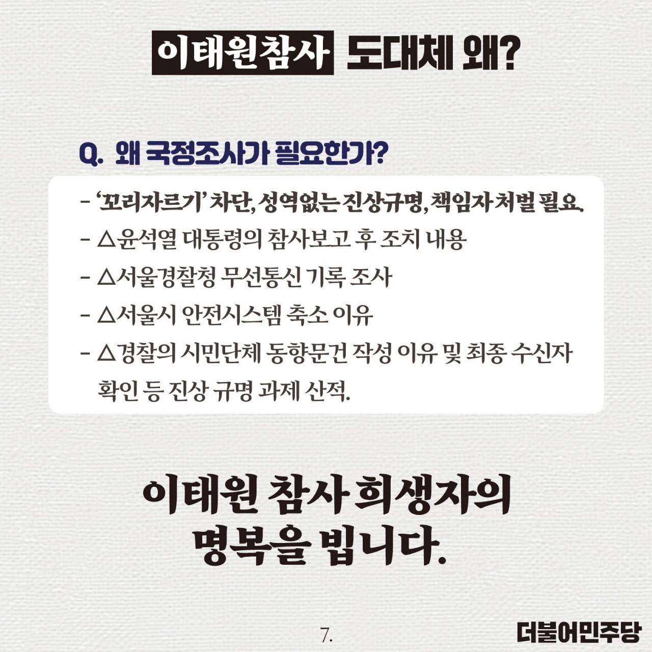 윤석열 대통령은 책임자를 파면하고 국정조사를 수용하십시오!