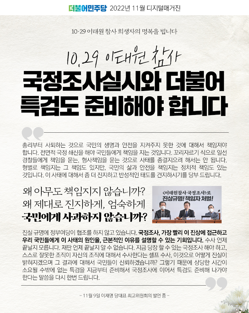 이태원참사 국정조사로 진상규명! 책임자 처벌!