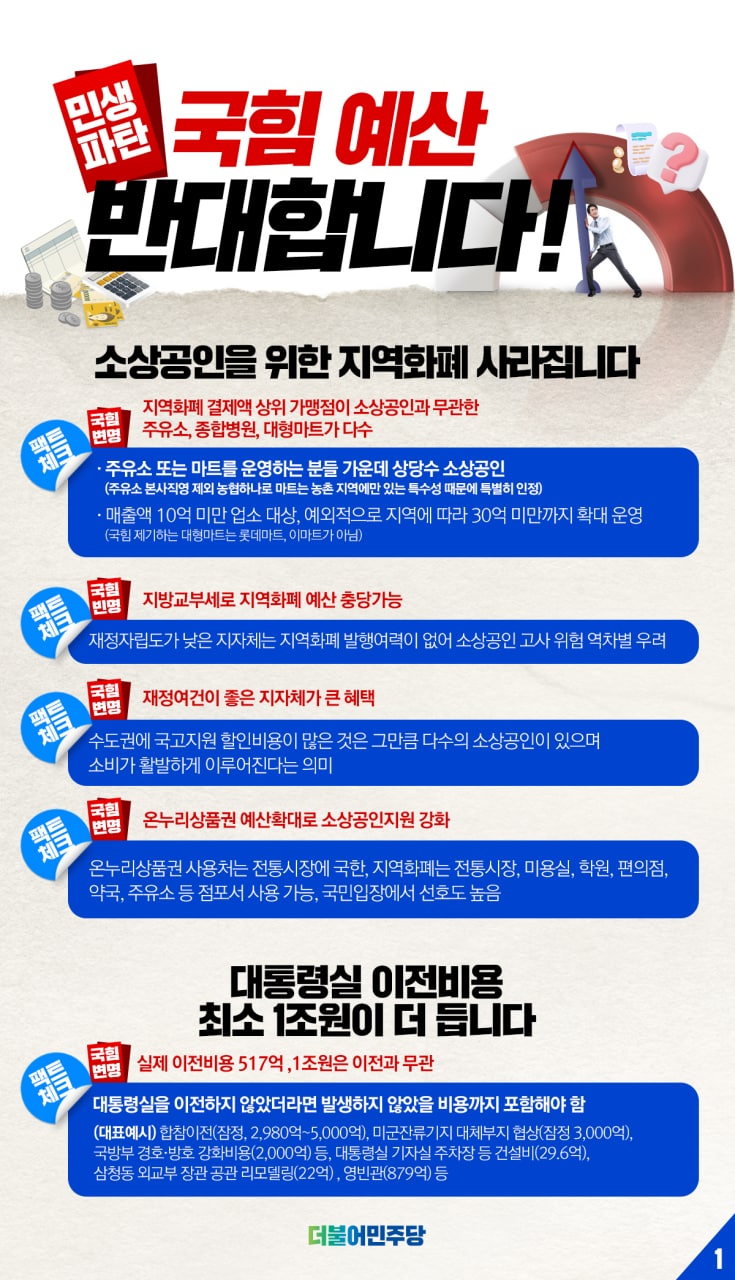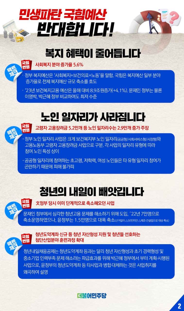 민생 파탄 국힘 예산 반대합니다!