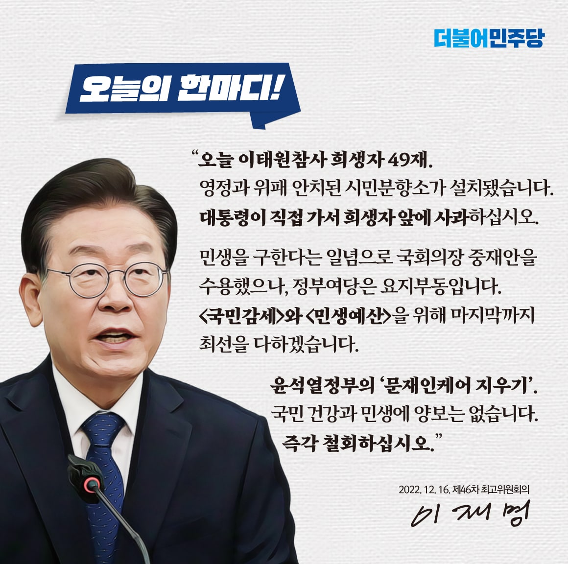 22.12.16 오늘의 한마디, 최고의 한마디