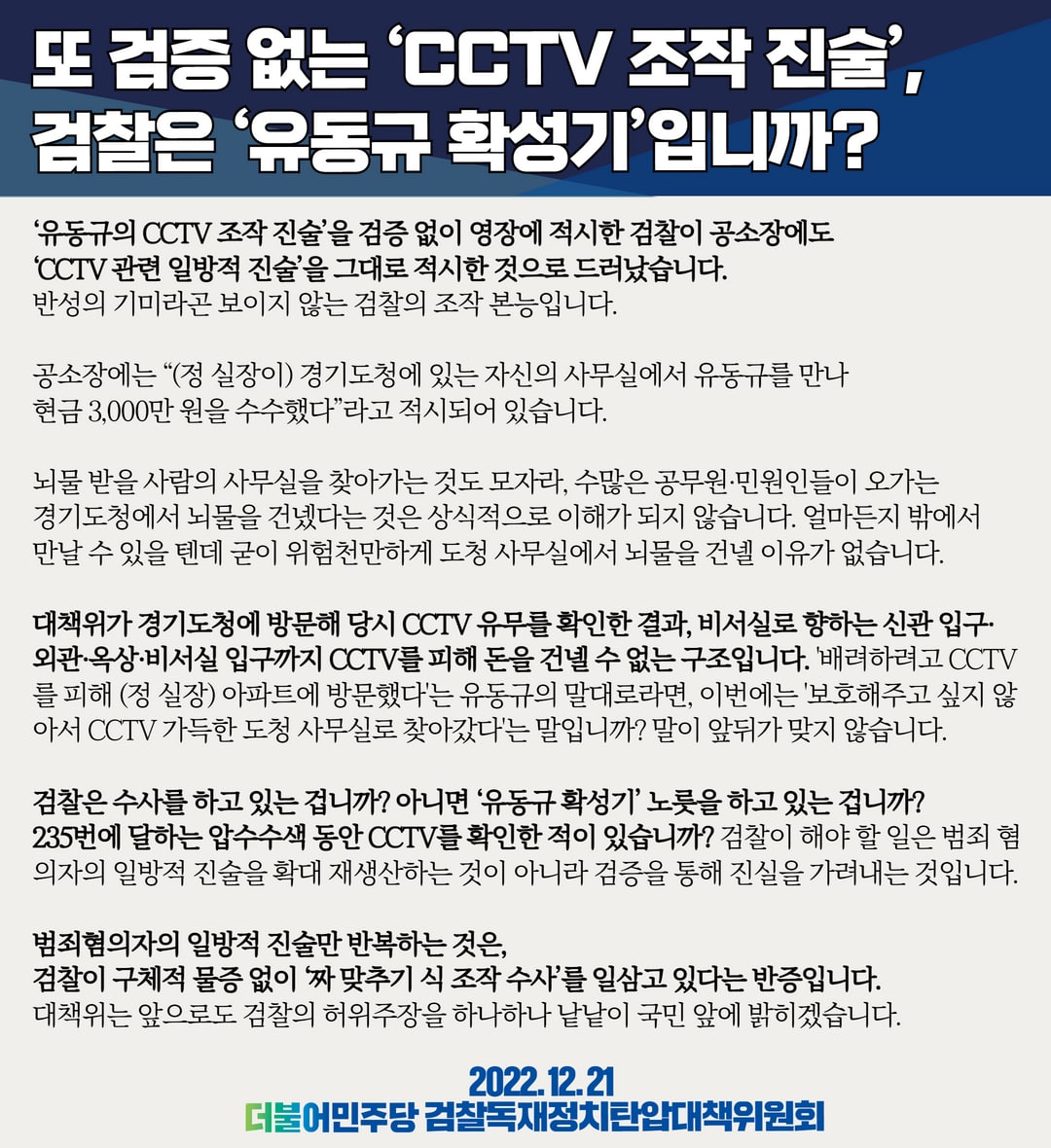 또 검증 없는 'CCTV 조작 진술', 검찰은 '유동규 확성기'입니까?
