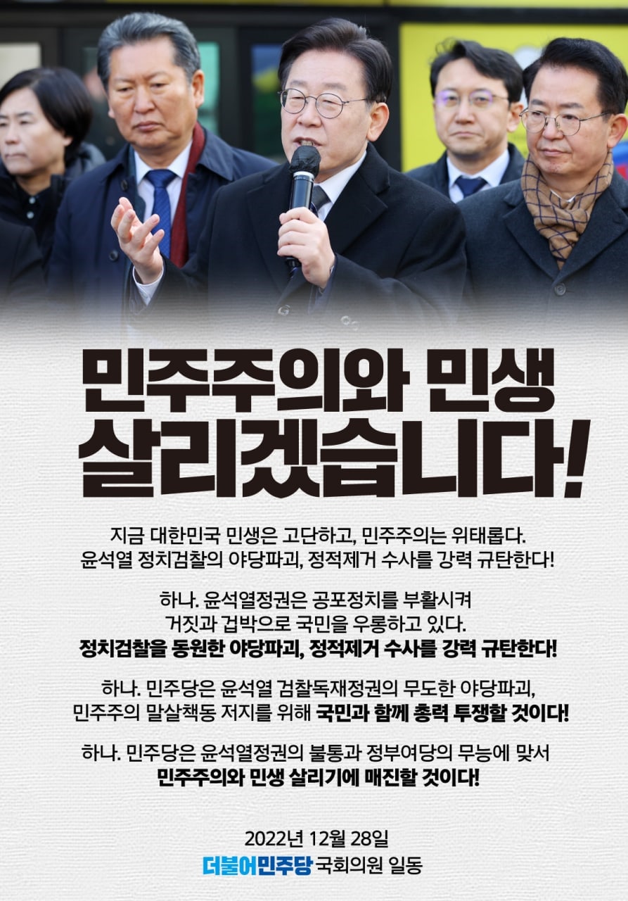 민주주의와 민생 살리겠습니다!