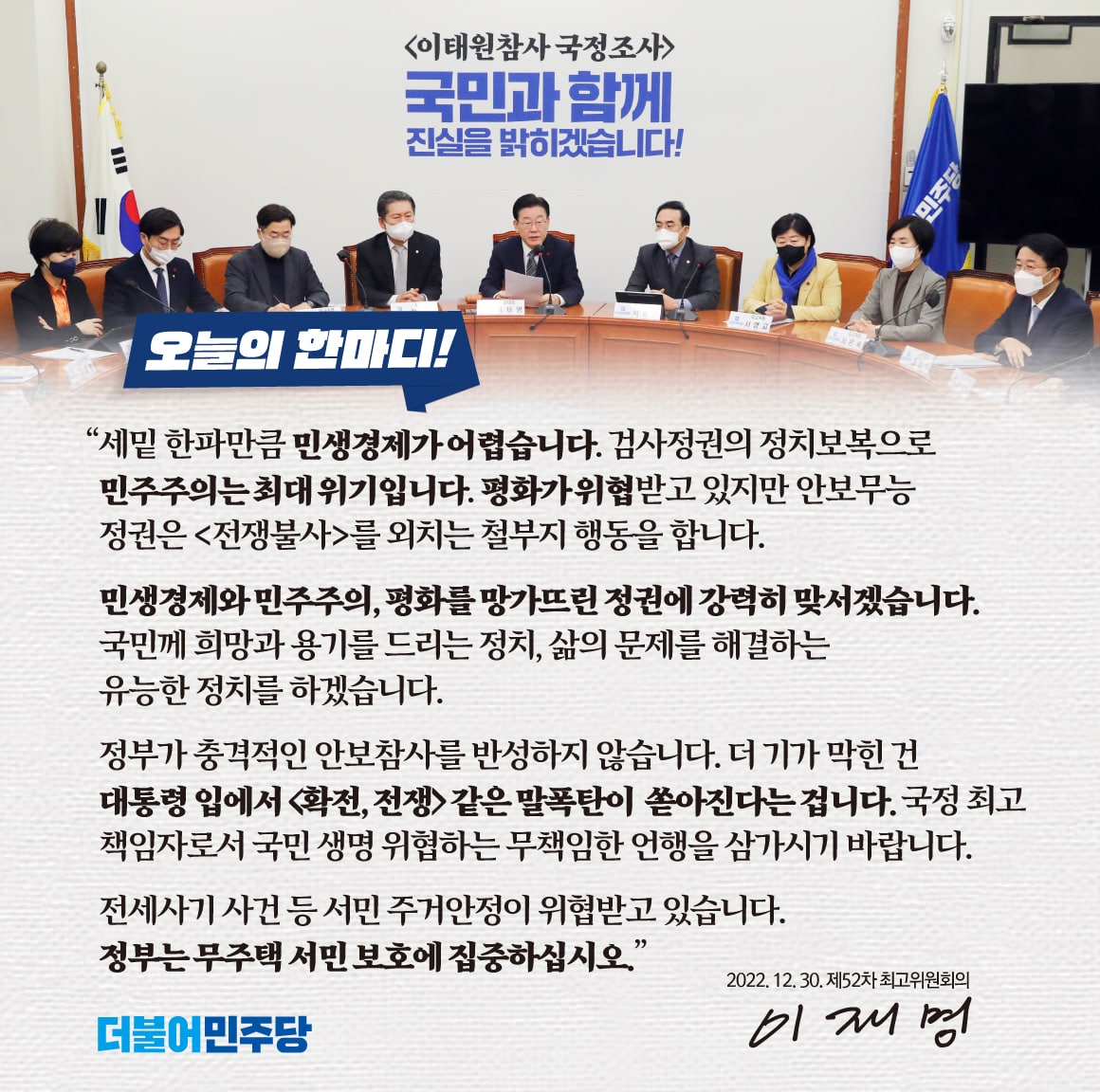 22.12.30 오늘의 한마디, 최고의 한마디