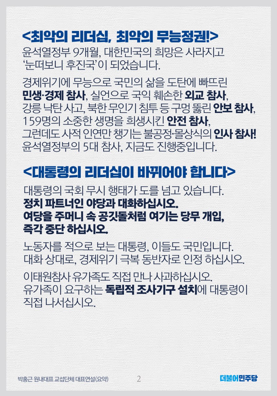 문제는 대통령입니다! [박홍근 원내대표 교섭단체 대표연설]