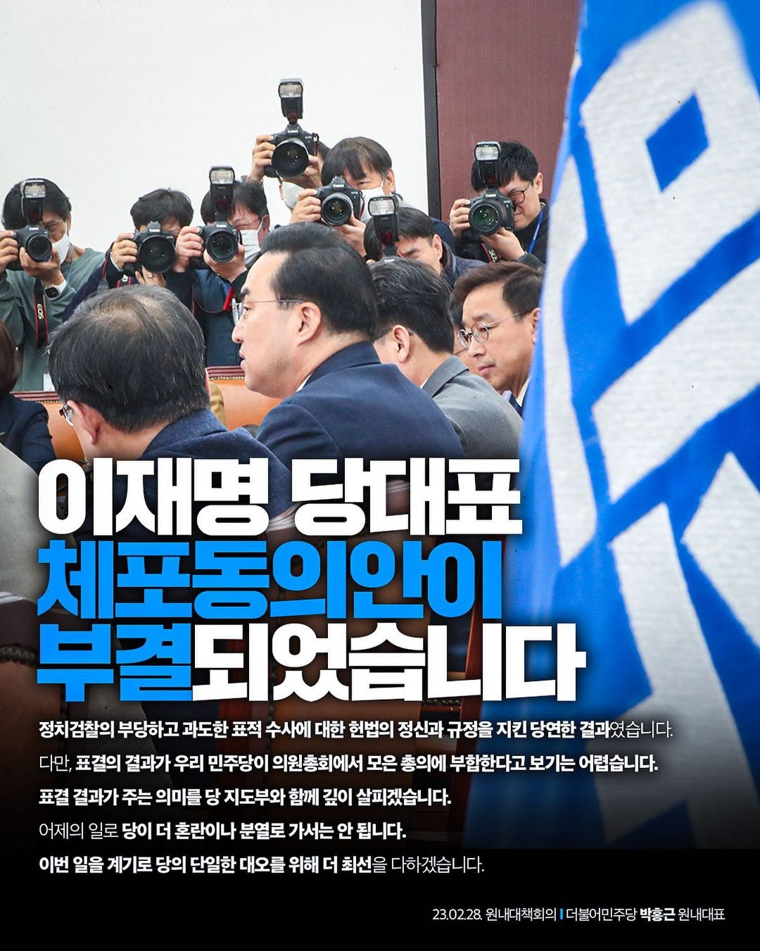 이재명 당대표 체포동의안이 부결되었습니다