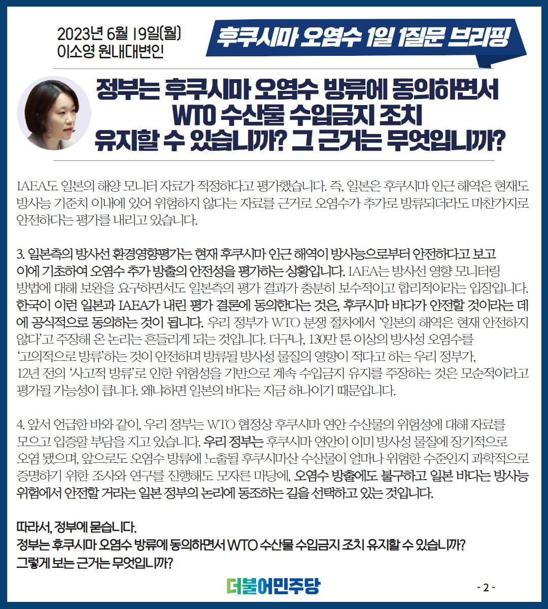 23.06.19 후쿠시마 오염수 1일1질문 브리핑