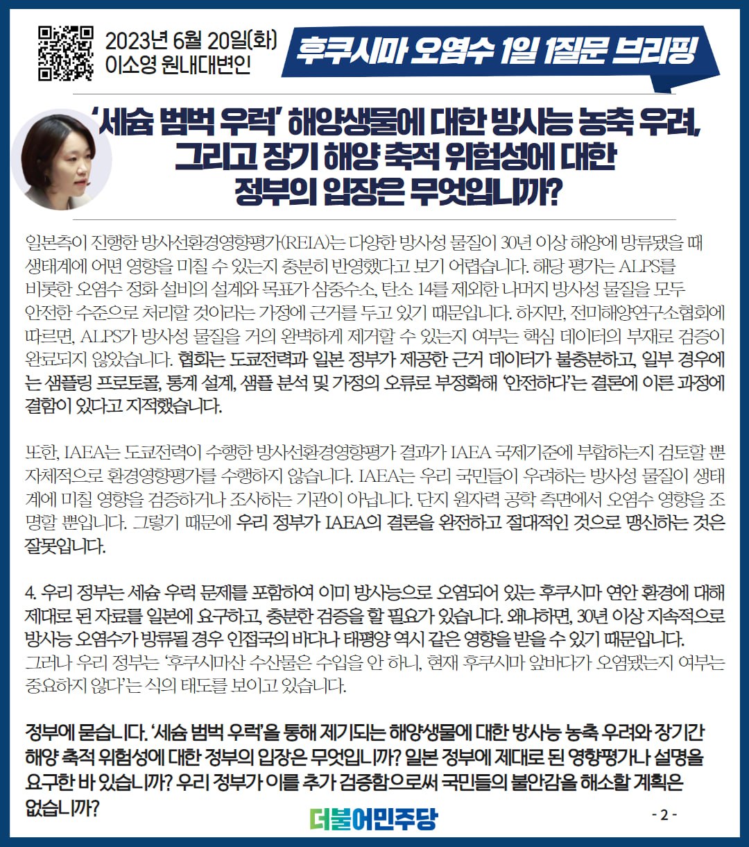 23.06.20 후쿠시마 오염수 1일1질문 브리핑