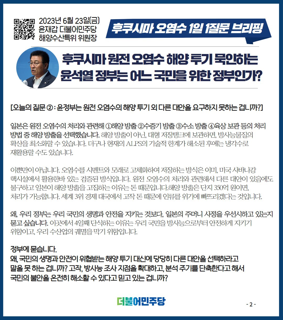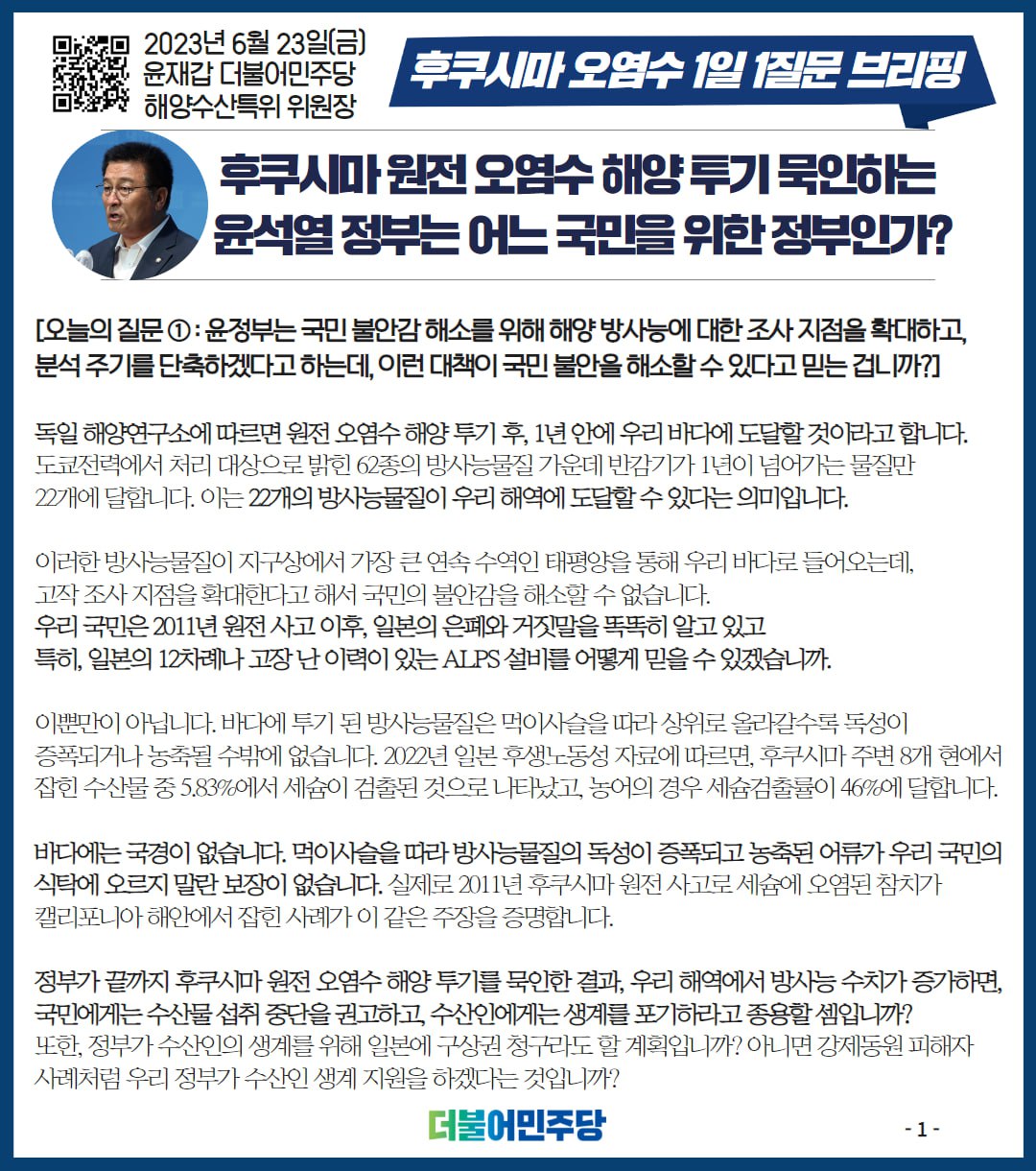23.06.23 후쿠시마 오염수 1일 1질문 브리핑