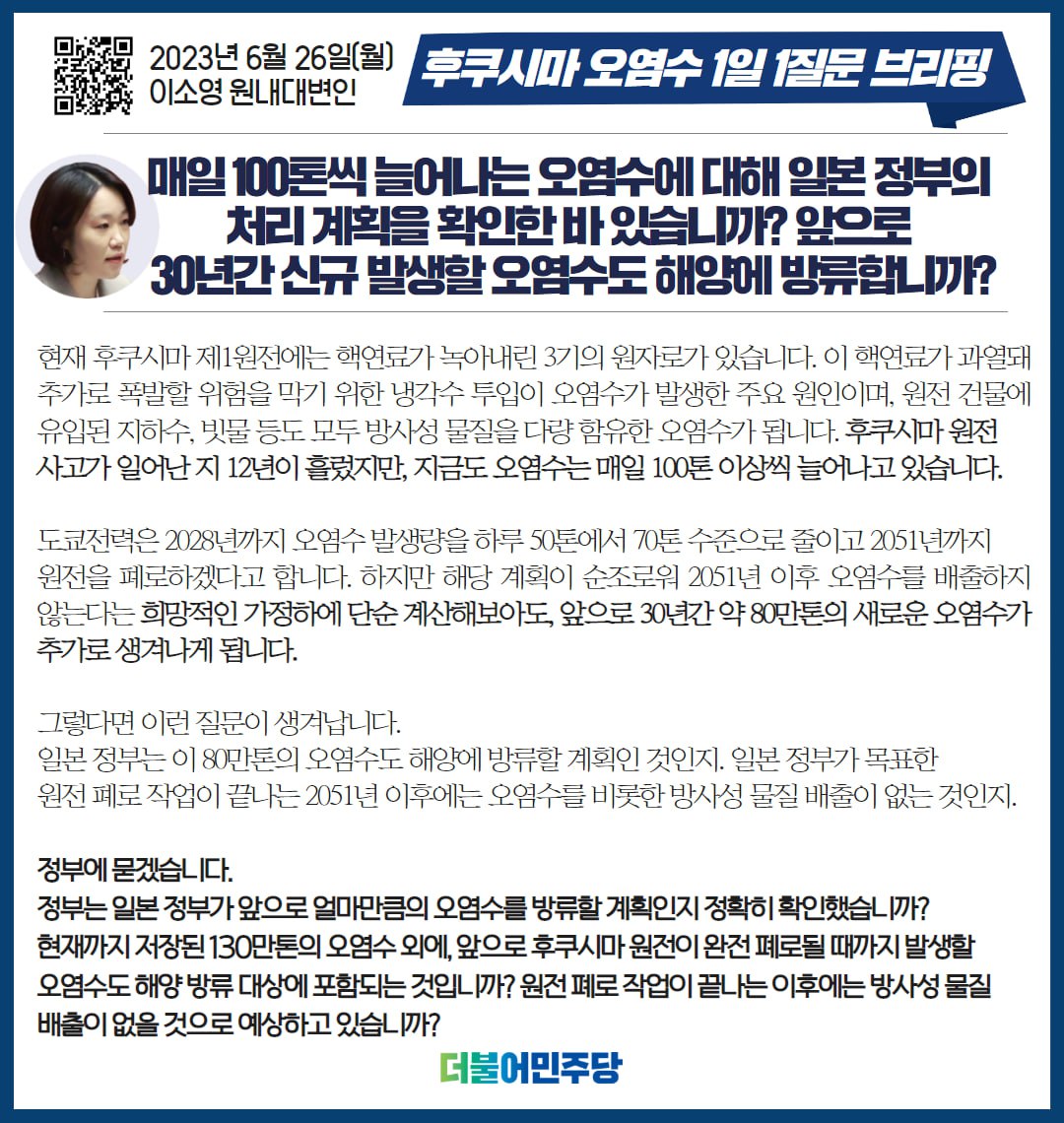 23.06.26 후쿠시마 오염수 1일1질문 브리핑