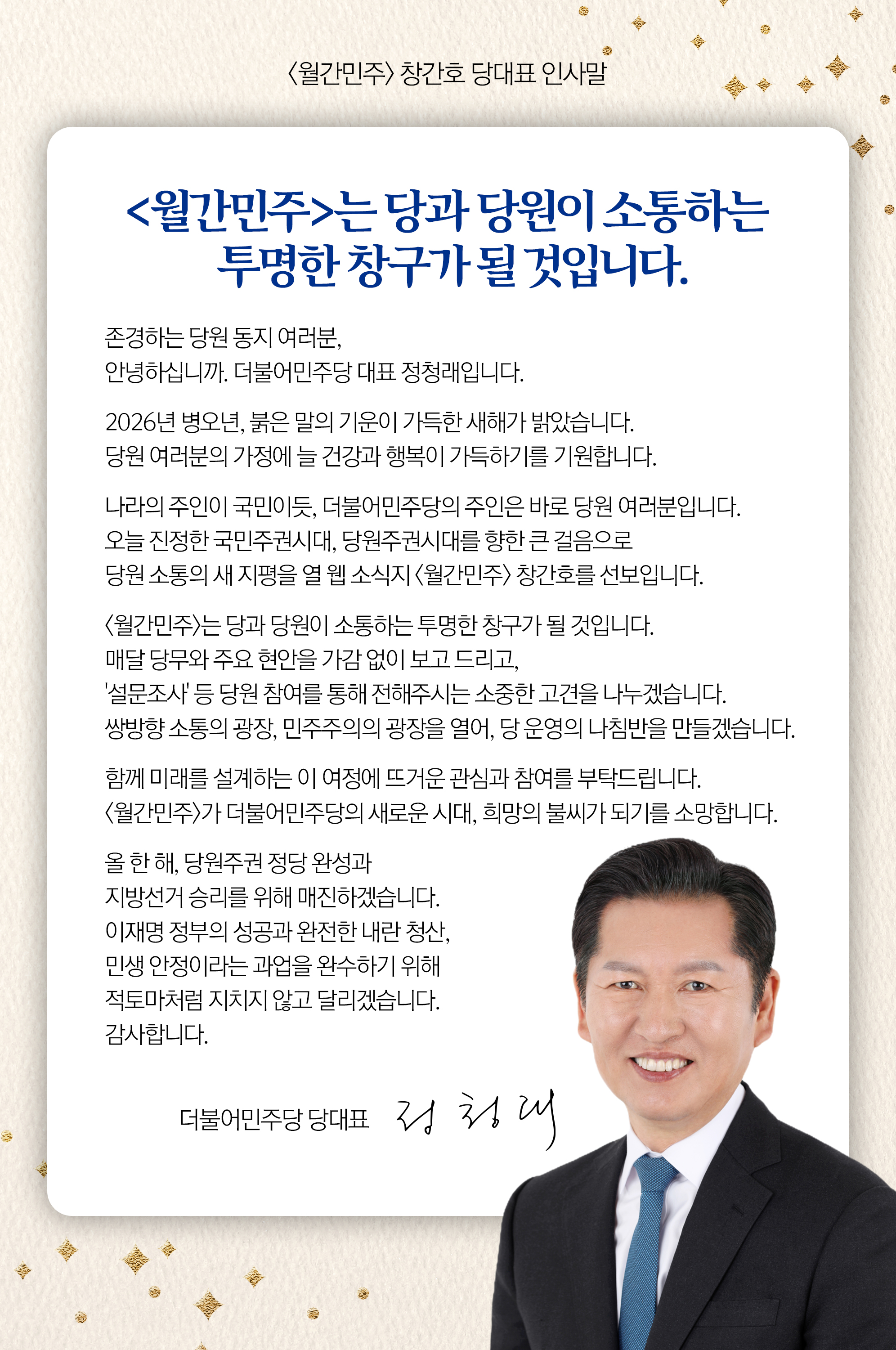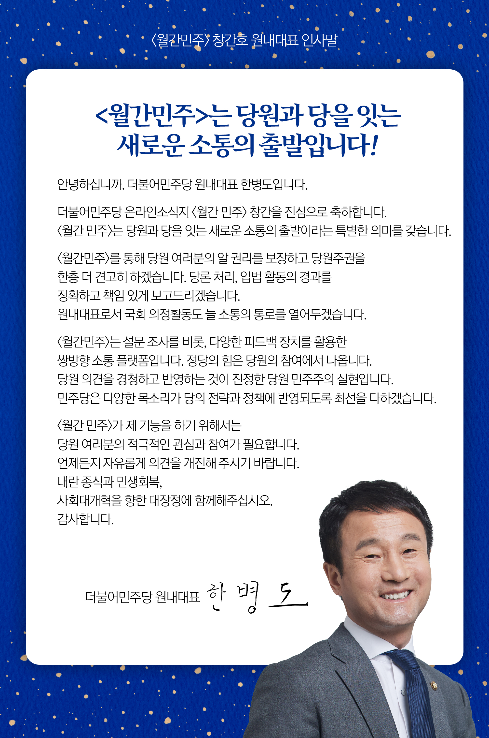 [월간민주 창간호] 정청래 당대표 및 한병도 원내대표 축사