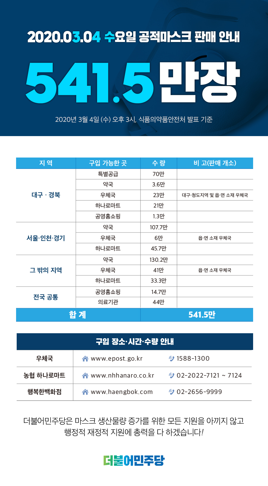3월 4일 공적마스크 "541.5만장" 공급!
