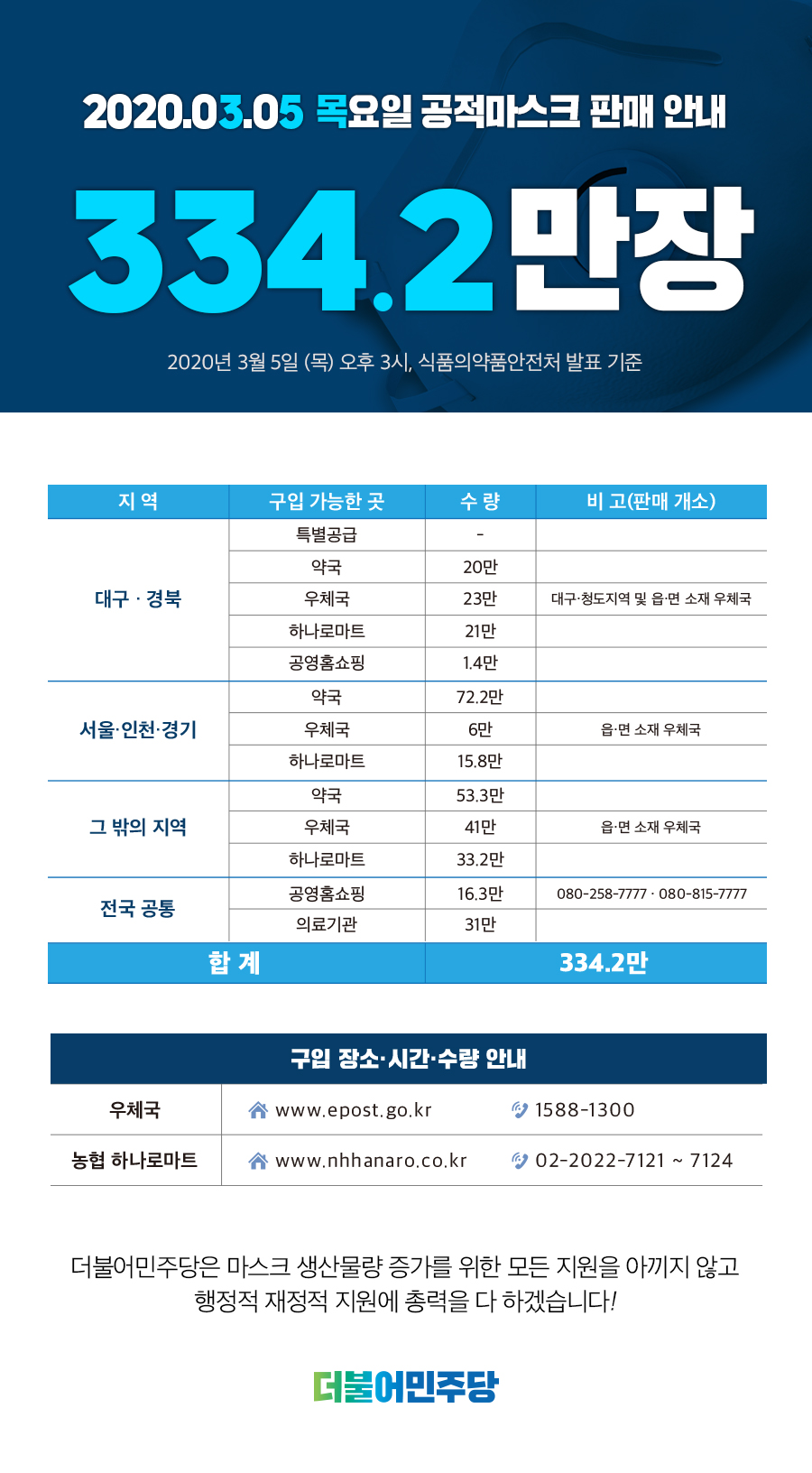 3월 5일 공적마스크 "334.2만장" 공급!