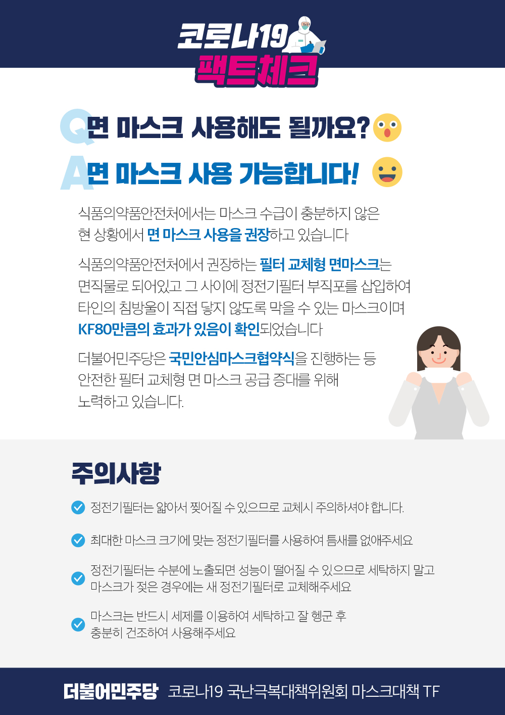 코로나19 팩트체크 1 - 면 마스크 사용?