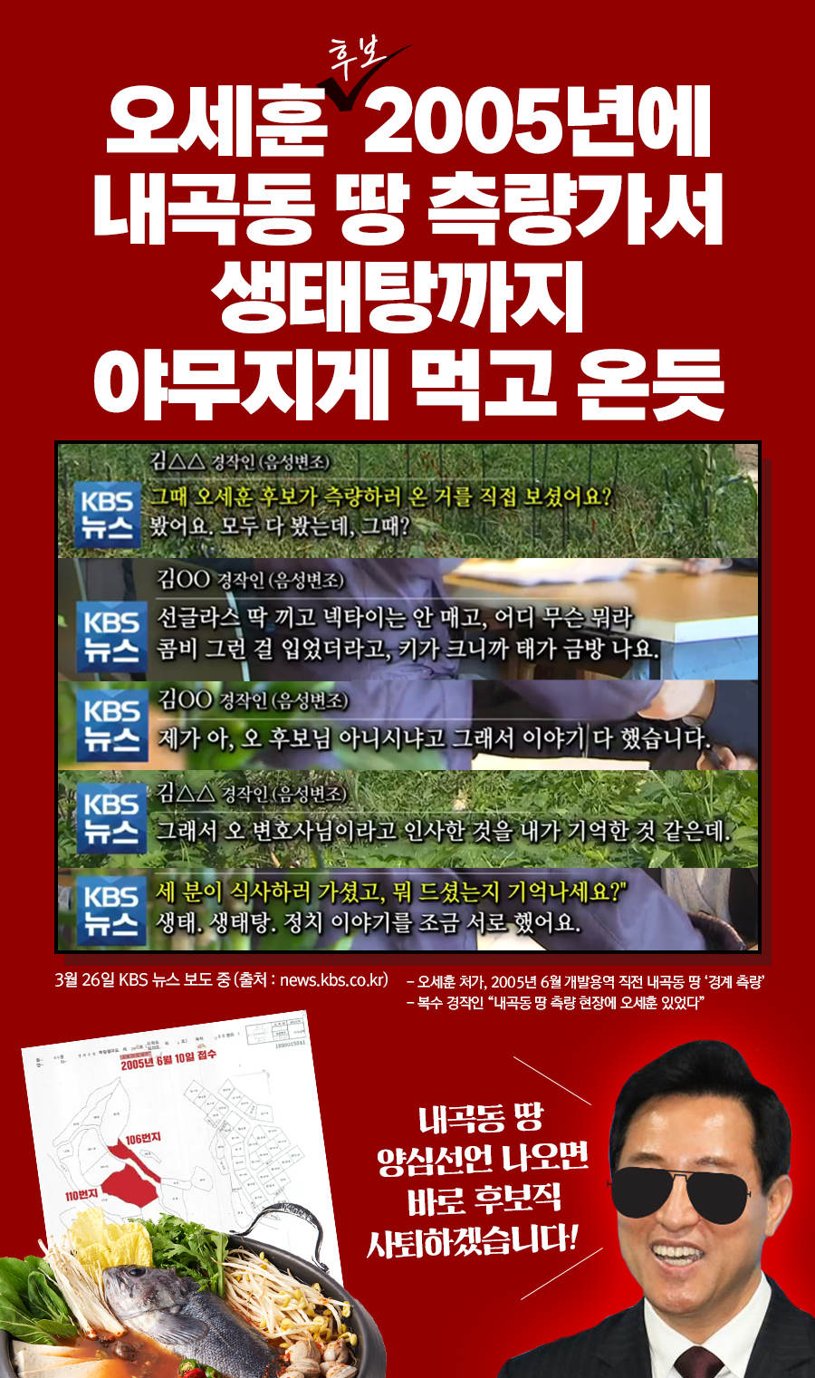 "내곡동 땅 측량 현장에 오세훈 있었다" 사실 밝히시길..