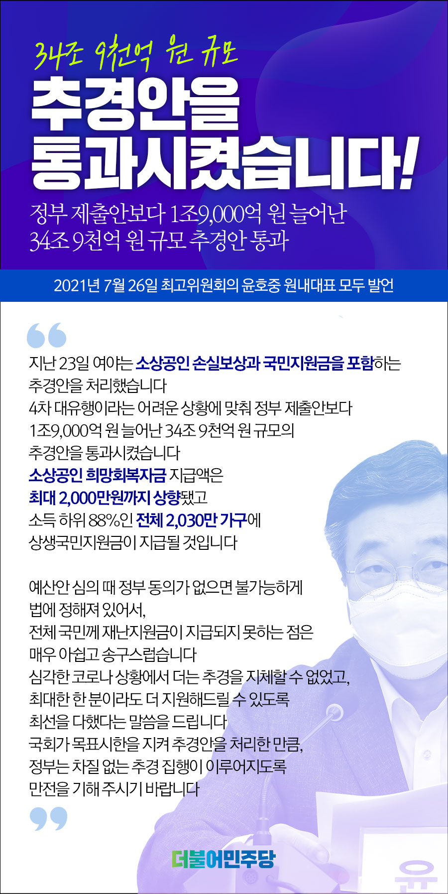 34조 9천억 원 규모 추경안을 통과시켰습니다!