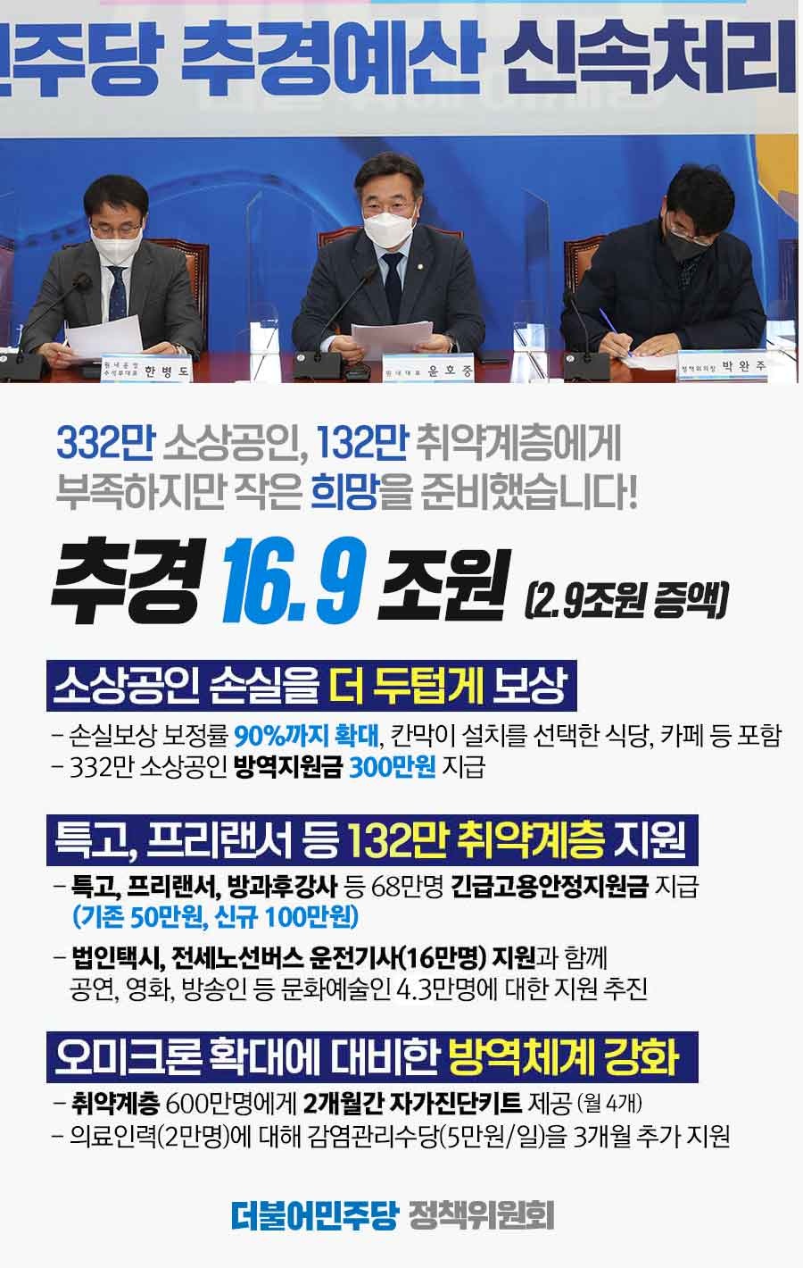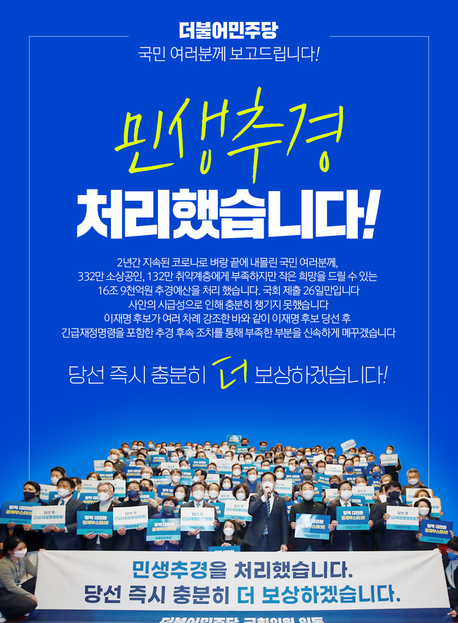 민생추경 처리했습니다! 322만 소상공인, 132만 취약계층에게 부족하지만 작은 희망을 준비했습니다!