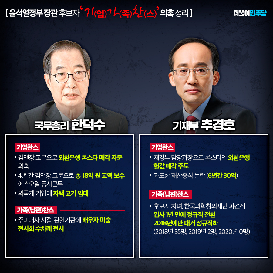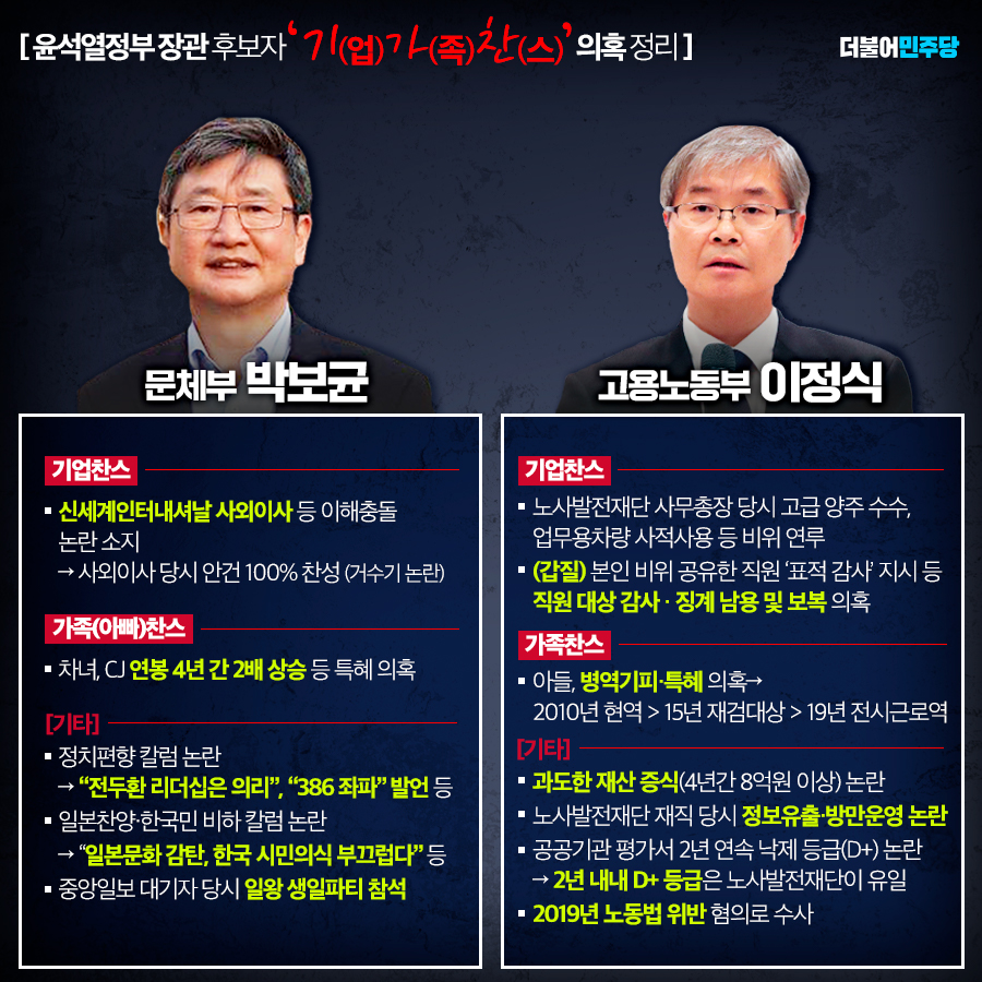 역대 최악 불공정 내각 탄생? 윤석열정부 장관 후보들 의혹 정리