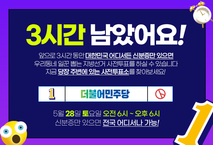 사전투표 3시간 남았습니다!