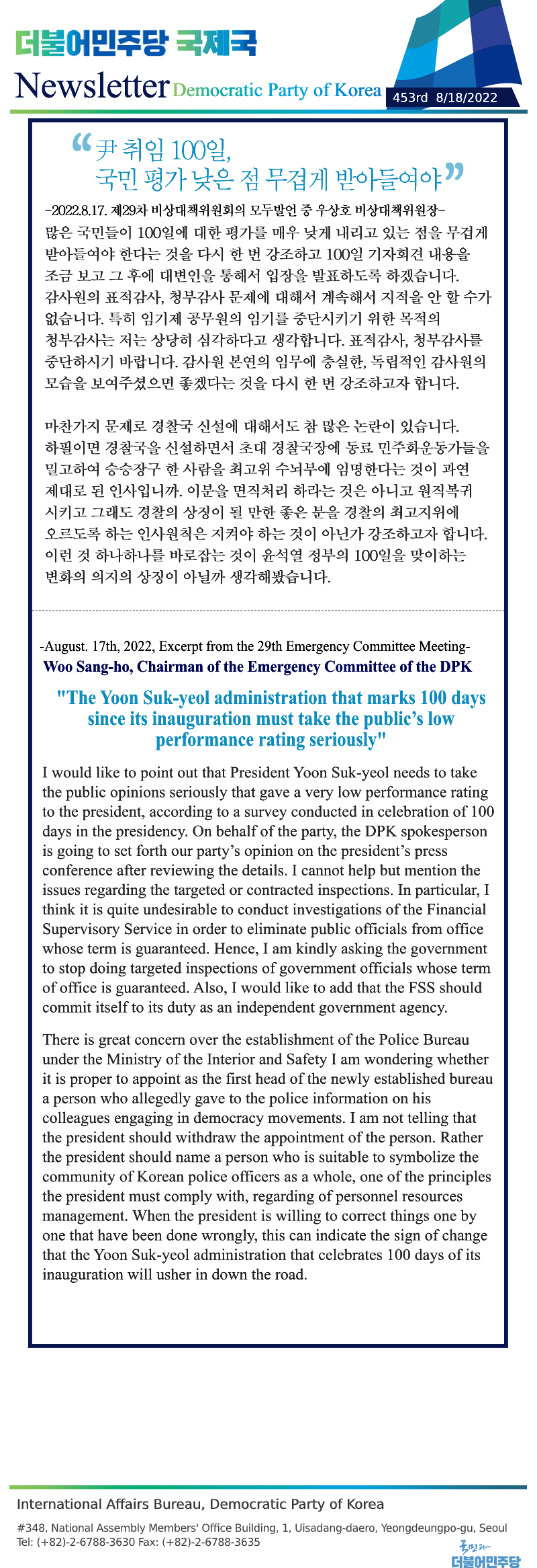 [453rd Newsletter] Excerpt from the 29th Emergency Committee Meeting