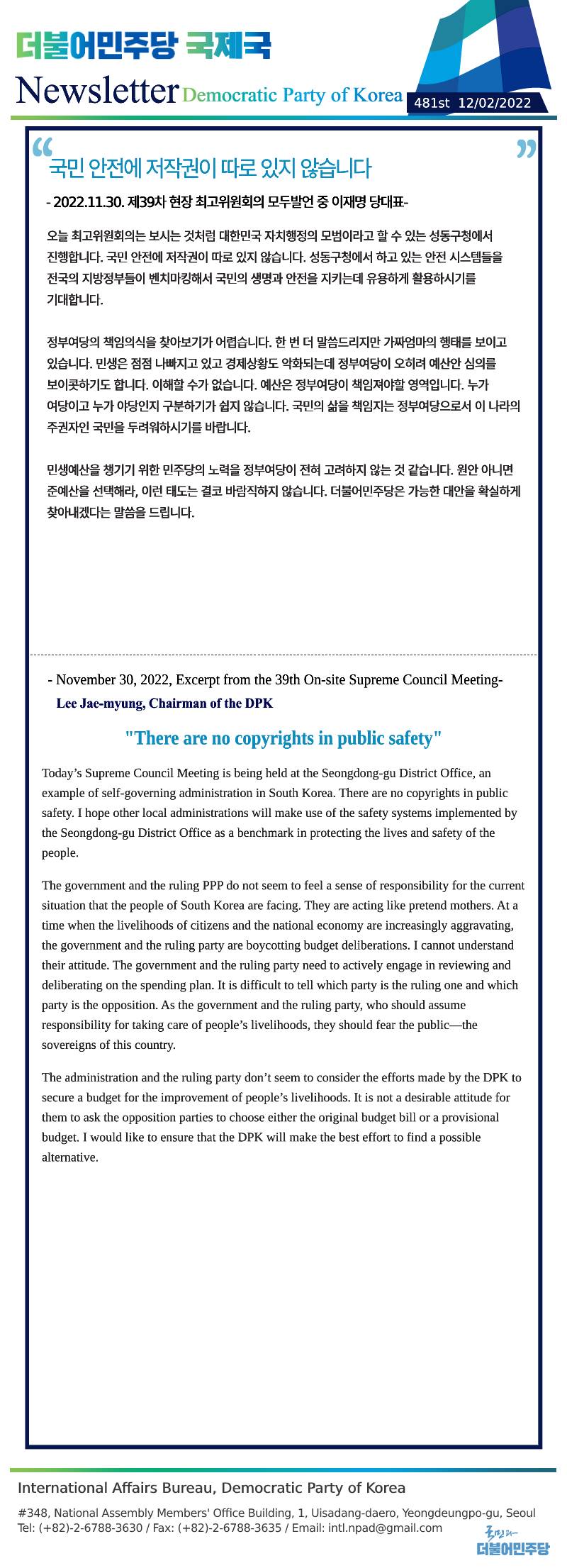 [481st Newsletter]Excerpt from the 39th On-site Supreme Council Meeting