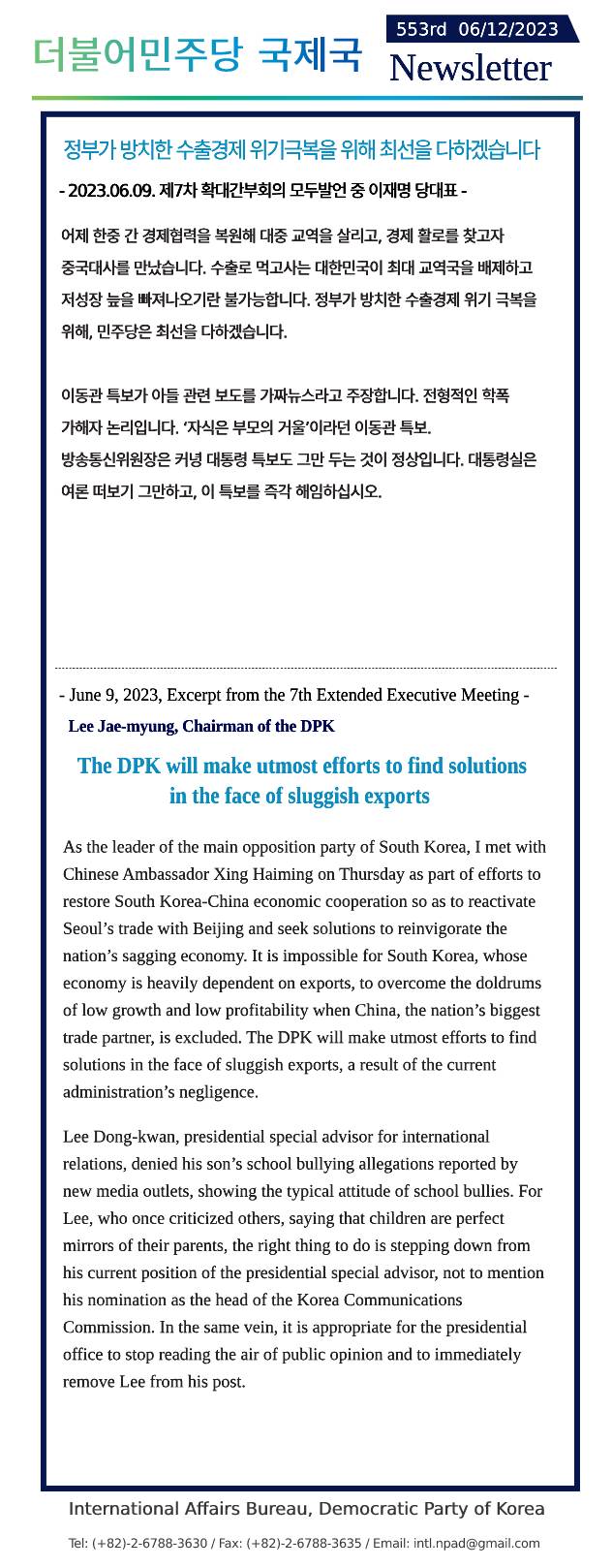 [553rd Newsletter]Excerpt from the 7th Extended Executive Meeting