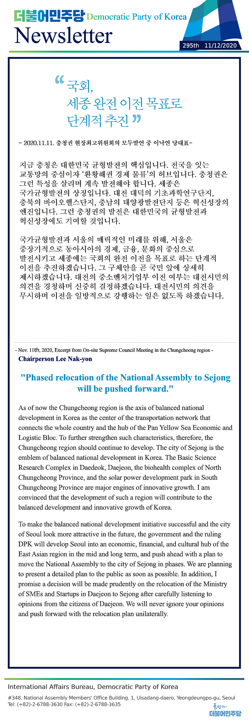 [295th Newsletter] Excerpt from On-site Supreme Council Meeting in the Chungcheong region