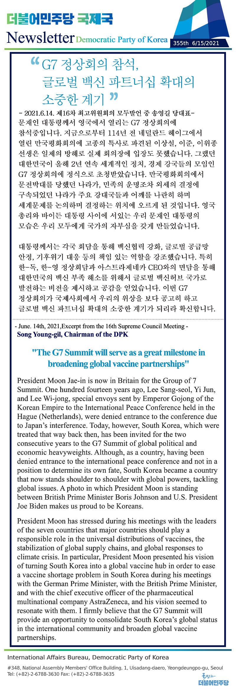 [356th Newsletter]Address Delivered by DPK Chairman Song Young-gil to the Parliamentary Negotiation