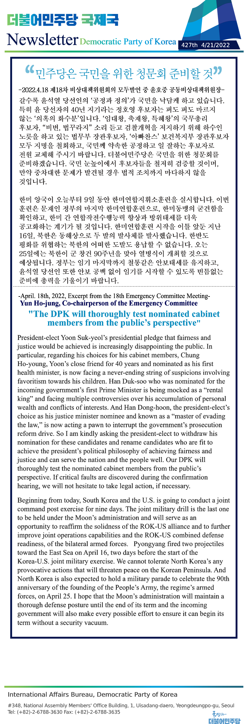 [427th Newsletter] Excerpt from the 18th Emergency Committee Meeting
