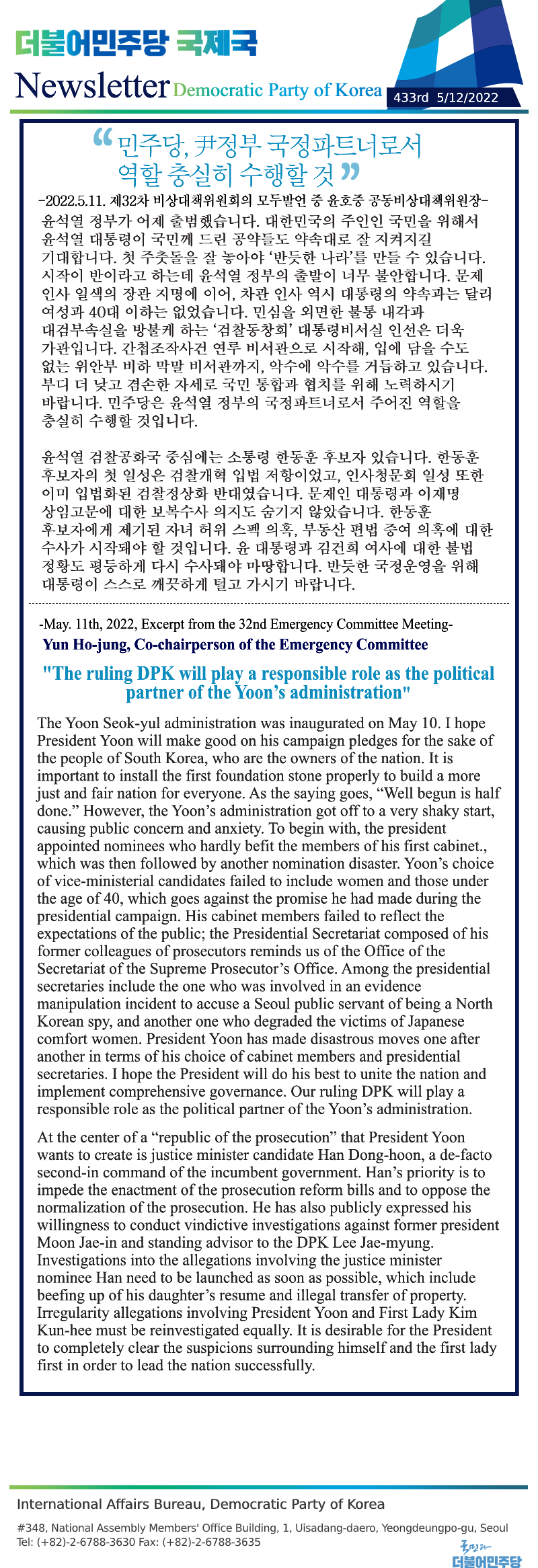 [433rd Newsletter] Excerpt from the 32nd Emergency Committee Meeting