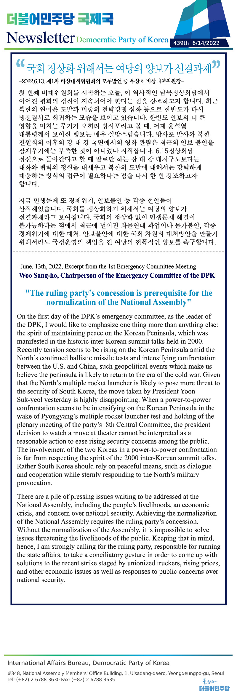 [438th Newsletter] Remarks of the DPK’s floor leader cum acting chairman at a press conference