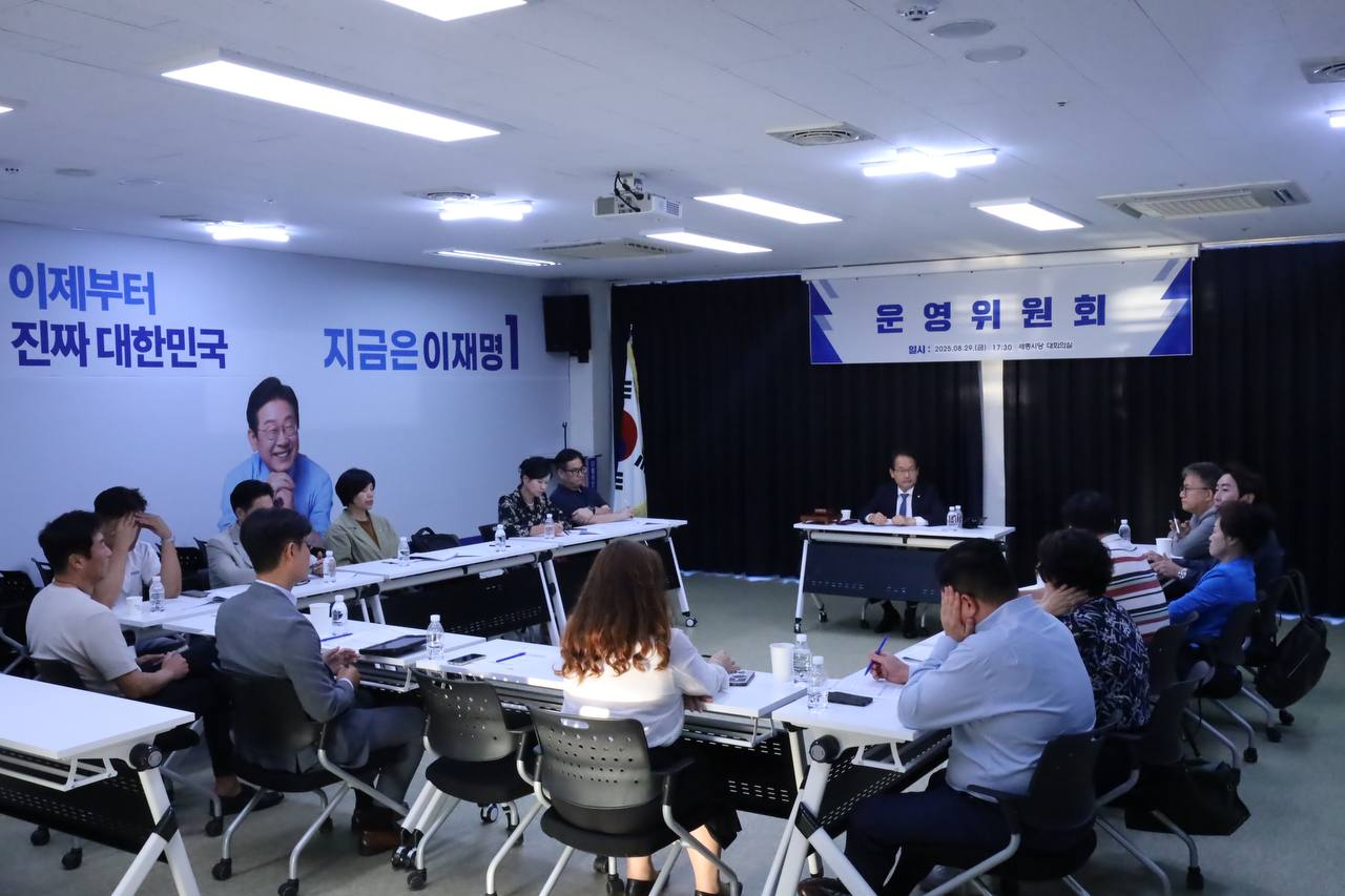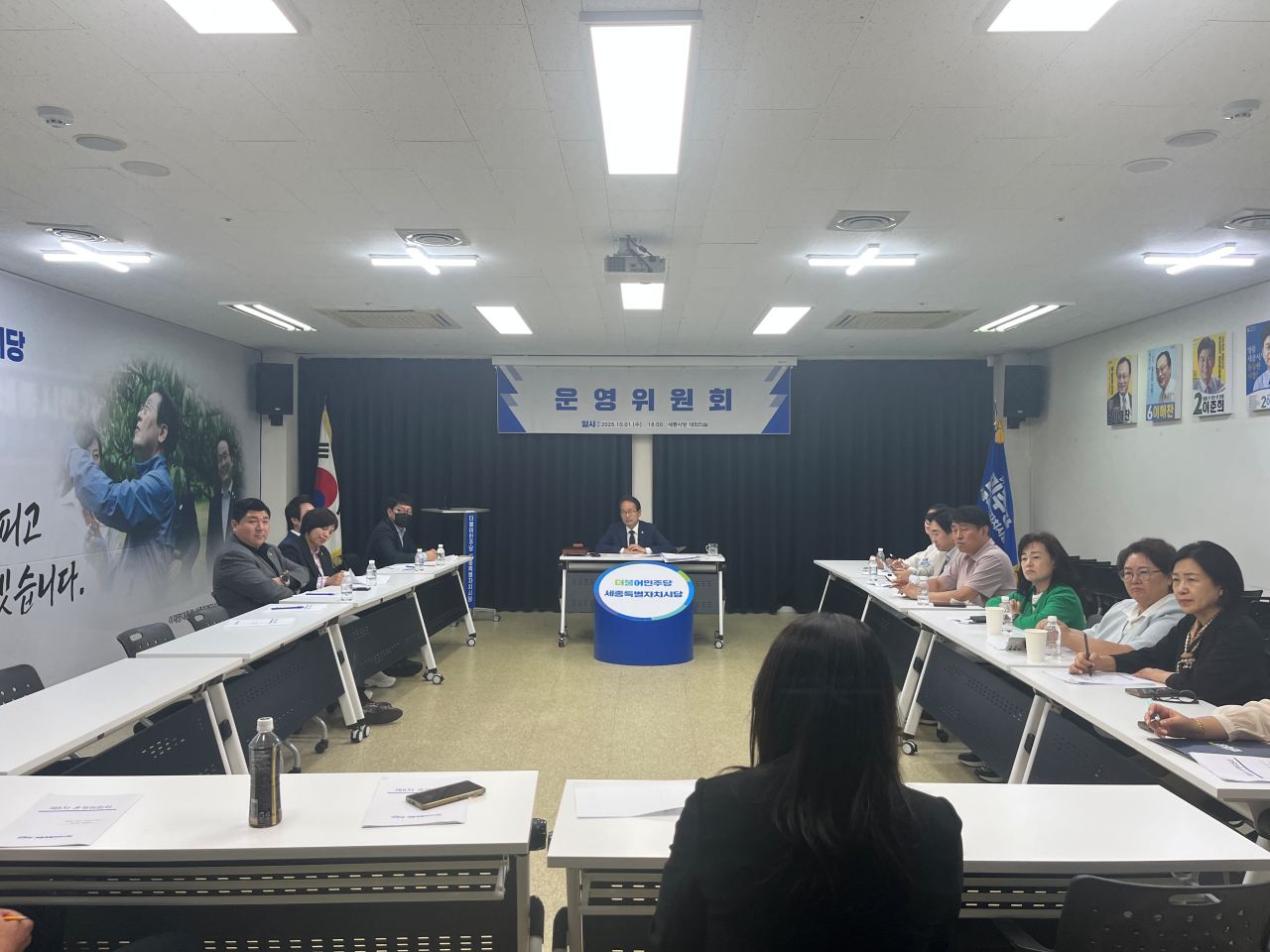 세종시당 제7차 운영위원회 개최 일시 : 2025년8월30일(금) 17:30 / 장소 : 세종시당 대회의실 / 참석 : 시당위원장 외 14명 / 안건 : 당직임명 및 각급위원회 추가 신청 위원 의결 등.