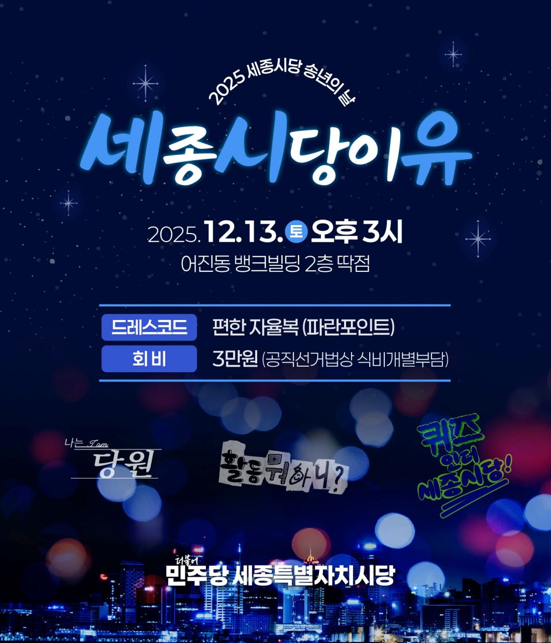 신청링크 : https://bit.ly/세종시당송년회참가