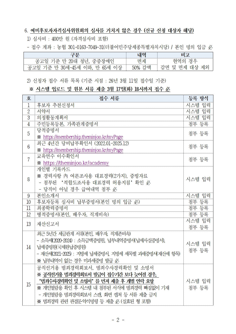 ◆ 당비납부확인서 : http://membership.theminjoo.kr/myPage